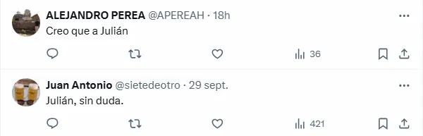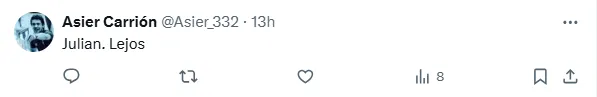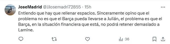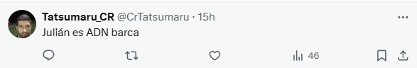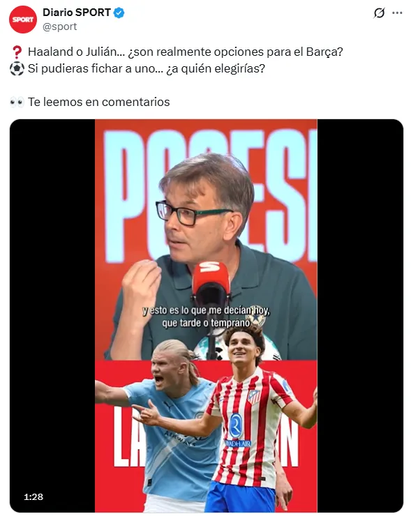 ”Julián es mi obsesión”, se puede leer entre los comentarios de una publicación que realizó en la red social X el periódico Sport, en la que planteaba con cuál de los dos delanteros preferían los hinchas del Barcelona para ocupar el puesto que de a poco se vislumbra que dejará Robert Lewandowski (de 37 años y con un contrato que vence a mediados del 2026).