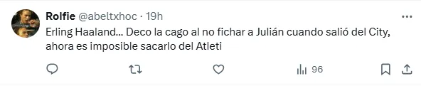 La gran mayoría de los aficionados dejaron en claro que entre uno u otro quieren al atacante de la Selección Argentina, aunque también entienden que por la alta cláusula que lo ata al Atlético de Madrid, contar con sus servicios es prácticamente una utopía. ”Ahora es imposible sacarlo del Atleti”, escribió otro de los hinchas.