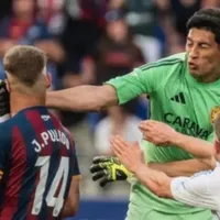 - El arquero Esteban Andrada agredió con un golpe al defensor Jorge Pulido en El Alcoraz.