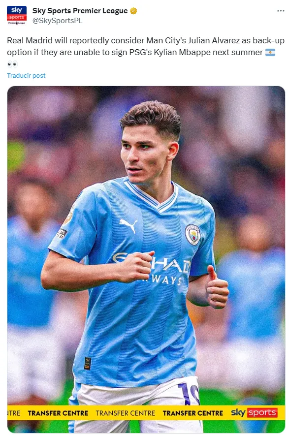Según informó Sky Sports, la llegada de Julián Álvarez al Real Madrid dependerá de la llegada -o no- de Kylian Mbappé al Merengue en el mercado de pases del próximo verano en Europa. Es decir, el delantero de la Selección Argentina parte como segunda opción en la Casa Blanca para iniciar la temporada 2024/25.