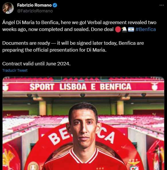 Con un contrato que estaría estipulado hasta junio del 2024, momento en el que finalmente podría regresar a Rosario Central, Di María ya tiene todo pactado con Benfica y en la tarde de este miércoles se firmaría el contrato definitivo.