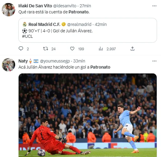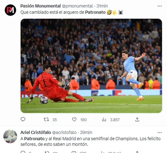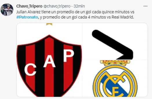 “El pibe de los goles a Patronato”, postearon algunos hinchas con el video del gol, mientras que otros dicen de forma irónica “que rara está la cuenta de Patronato“, por el tuit del perfil de Real Madrid tras el tanto de la Araña.