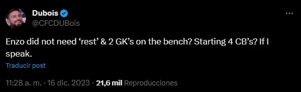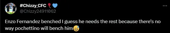 ¿Enzo al banco? Espero que necesite “descanso”, sino no se entiende por qué lo benchearía, opina otro fan de los Blues.
