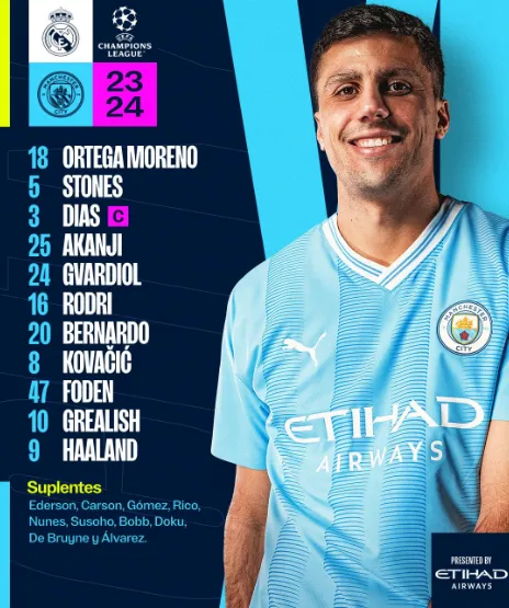 La formación de Manchester City contra Real Madrid