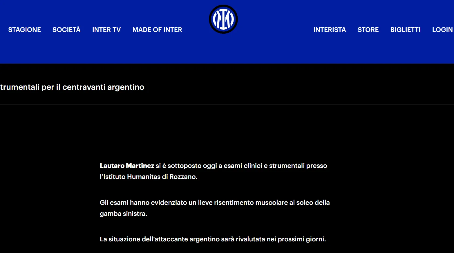 Sin embargo, otra vez hubo malas noticias para el delantero este viernes, previo a una visita de riesgo al Como para el equipo que conduce Cristian Chivu. Según informó el club italiano en un comunicado, las pruebas médicas que se realizó tras sentir nuevas molestias físicas arrojaron que sufre “una leve distensión en el músculo sóleo de su pierna izquierda”.