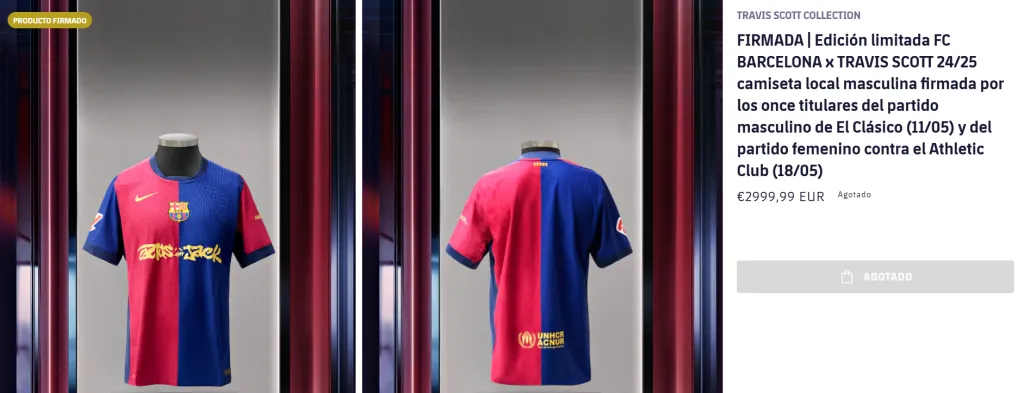 Cactus Jack es la marca de Travis Scott, el rapero estadounidense. En alianza con Spotify es que el sello discográfico del músico de 34 años aparece en el frente de la camiseta de Barcelona. Cabe destacar que en el equipo masculino será únicamente para el clásico de este 11 de mayo, mientras que en el equipo femenino aparecerá en el duelo ante el Athletic Club de Bilbao el próximo fin de semana. Si bien están agotadas, el precio de estas casacas fue de 300 euros.