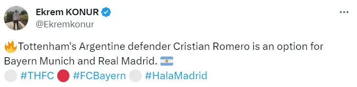 El nivel de Cristian Romero lo posiciona como uno de los mejores defensores del mundo y es por eso que no sorprenden los nombres de los clubes que se interesan en él. El zaguero del Tottenham, que tiene contrato allí hasta junio de 2027, es seguido por el Real Madrid y el Bayern Munich.