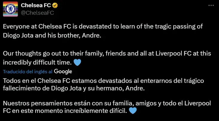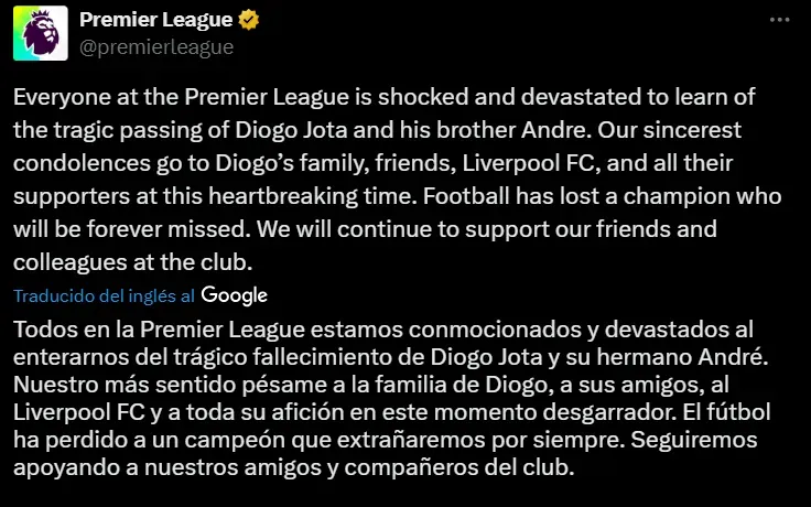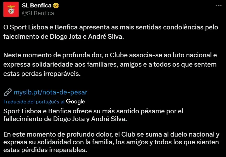 Dolor en el mundo del fútbol. Diogo Jota y su hermano André Silva perdieron la vida en un accidente de tránsito en Zamora, España. Según reportes policiales, el automóvil donde viajaban los futbolistas salió de la ruta y se incendió. El mundo del fútbol expresó su más profundo dolor y lo hizo a través de las redes sociales. Desde Liverpool, club en el que jugaba Diogo Jota, pasando por la Selección de Portugal, Benfica, Porto, Chelsea y la UEFA, entre otros, se mostraron devastados por la noticia.