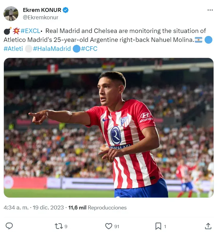 El ex-Boca, que actualmente milita en el Atlético Madrid, está en la órbita del Merengue. “Real Madrid y Chelsea están siguiendo la situación del lateral derecho argentino de 25 años”, informó Ekrem Konur, periodista especializado en el mercado de pases de Europa.
