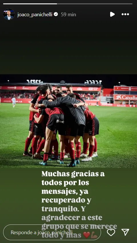 Este jueves por la mañana, el propio Joaquín Panichelli utilizó su cuenta de Instagram para agradecer la preocupación. En una historia subió una foto junto a sus compañeros y escribió: “Muchas gracias a todos por los mensajes de apoyo. Ya recuperado y tranquilo. Quiero agradecer a este grupo que se merece todo y más”.