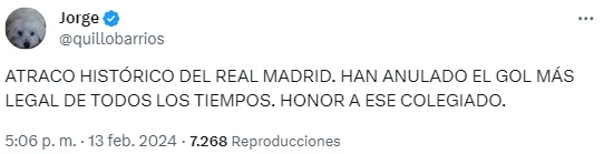 En las redes sociales, los usuarios que estaban siguiendo el encuentro estallaron contra la decisión: “Atraco histórico“. Otro disparó: “Un minuto ha tardado Real Madrid en atracar una eliminatoria. Este equipo no deja de batir récords“.