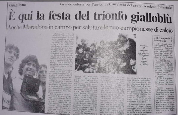 No mentía: en 1989, cuando la Associazione Calcio Femminile Giugliano -rebautizado GB Campania en aquel momento-, club ubicado en el municipio de Giugliano in Campania, de 120.00 habitantes, en el noroeste de Nápoles, estaba por ganar su primer Scudetto, lo invitaron para homenajearlo. Maradona ya conocía el lugar, lo visitaba cada vez que iba al dentista y causaba revuelo.