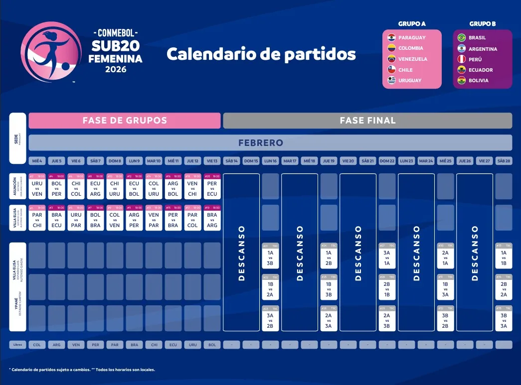 Argentina tendrá libre la primera fecha y debutará recién el sábado 7 de febrero, ante Ecuador. Y ya no tendrá descanso: el lunes 9 se enfrentará a Perú, el miércoles 11 a Bolivia y cerrará su fase de grupos con el clásico sudamericano ante Brasil, nada menos que un viernes 13.