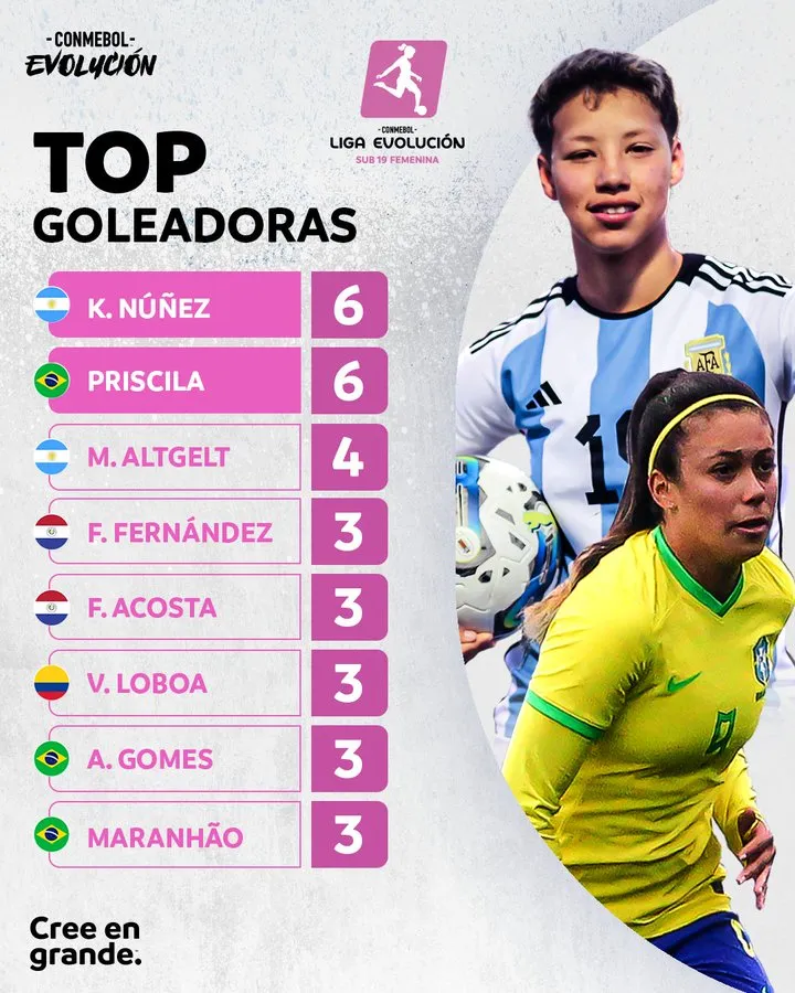 Una buena noticia para la Selección. Una buena noticia para Boca, sobre todo teniendo en cuenta que se viene la Copa Libertadores. Argentina finalizó el torneo Conmebol Evolución Sub 19 que se disputó en Colonia, Uruguay, obteniendo la medalla de bronce, luego de lograr cuatro victorias y una derrota. Y contó con una figura excluyente: Kishi Núñez, la delantera de Boca de 17 años que convirtió seis goles y finalizó como máxima anotadora del torneo junto con la brasileña Priscila Flor da Silva.