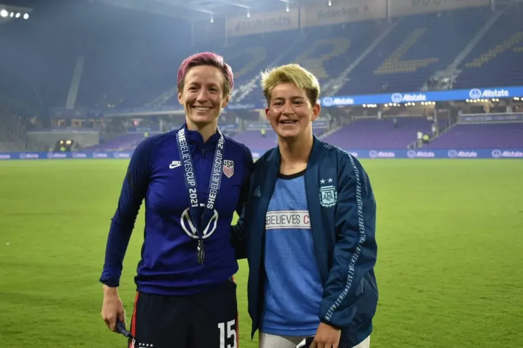 Después del partido, tras la coronación, Megan Rapinoe se llevó todos los flashes una vez más. Una de las que se acercó a fotografiarse con ella fue la delantera de Boca Yamila Rodríguez quien luego compartió la foto con la estadounidense en las redes sociales, etiquetándola y agradeciendo, lo que luego resultó en un reclamo.