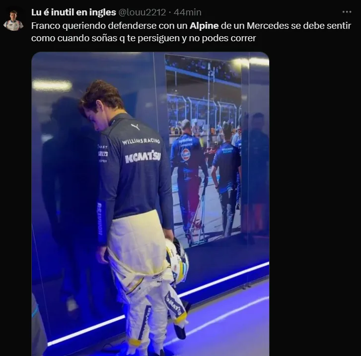 En las redes sociales se vivió la carrera de manera apasionada, sobre todo con críticas hacia Alpine por el flojo rendimiento que tuvo Franco Colapinto. Cabe destacar que Pierre Gasly -compañero de escudería de Franco- finalizó en el puesto 10. Otro de los aspectos donde se puso el foco en las redes fue en que el argentino tuvo que defender la posición durante varias vueltas con el Mercedes de Antonelli.