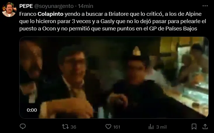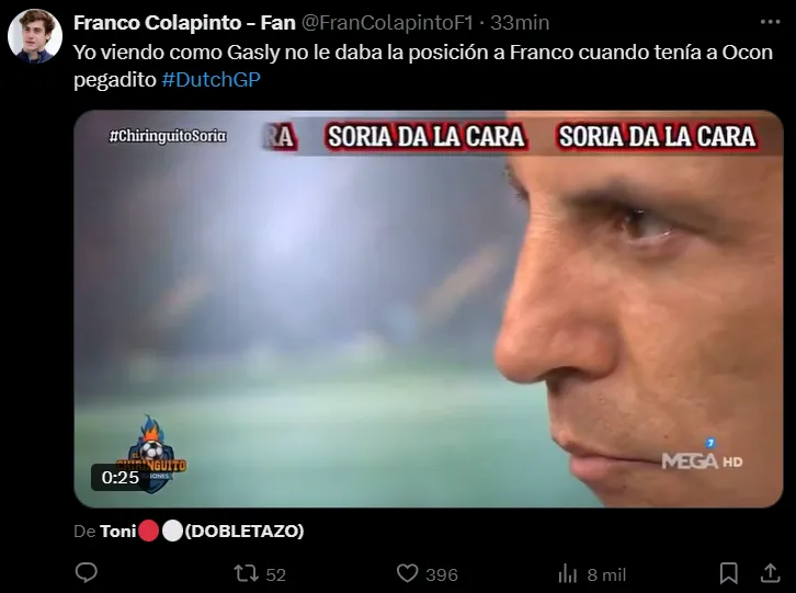 Franco Colapinto tuvo su mejor carrera con Alpine en el GP de Países Bajos de la Fórmula 1. El argentino terminó en el puesto número 11 y quedó a una posición de sumar su primer punto con la escudería francesa. En las redes sociales se vivió con mucha pasión esta carrera, sobre todo porque la decisión del equipo fue que el pilarense le devuelva la posición a Gasly luego de haberlo pasado con una gran maniobra.