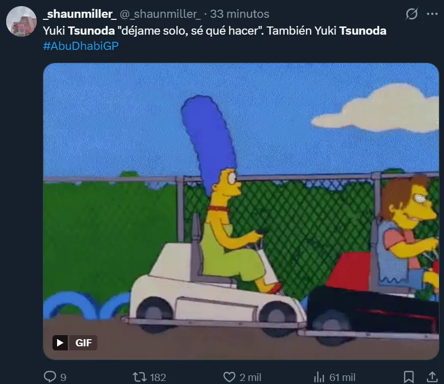 Quien fue protagonista por no poder hacer un buen trabajo fue Yuki Tsunoda, que tenía la misión de aguantar a Lando Norris detrás, pero no pudo hacerlo y en las redes sociales apuntaron contra él.