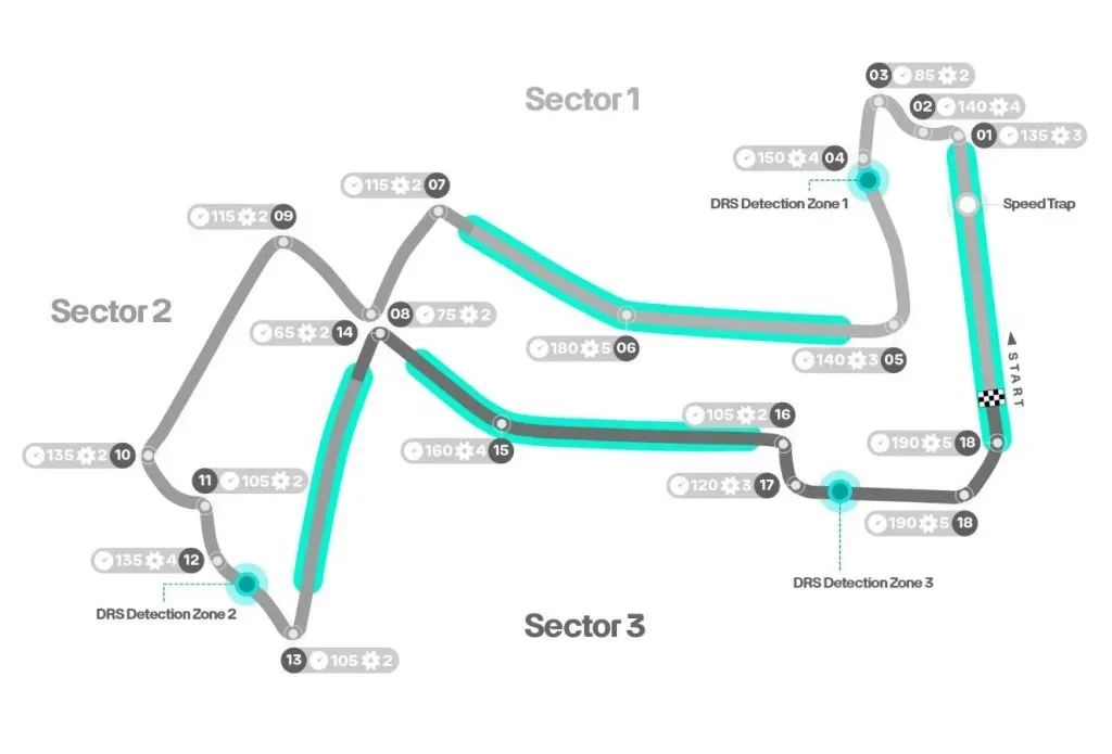En el Gran Premio de Singapur, los pilotos se encontrarán con una nueva zona de DRS, la cuarta en el circuito, anunciada la FIA en la semana previa a la carrera. Será entre las curvas 14 y 16, luego de uno de los puntos de frenado más intensos del trazado.