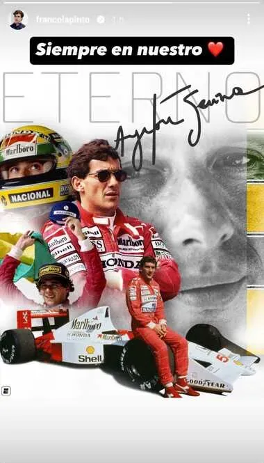 Colapinto compartió una imagen de ESPN en la que se lo ve al piloto brasileño en varios tramos de su carrera. La foto fue acompañada por una corta, pero sentida frase: “Siempre en nuestro corazón”.