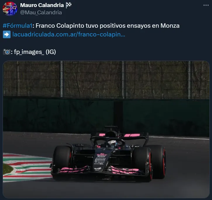 En medio de ese panorama, el propio Colapinto dio la nota por intermedio de las redes sociales. De hecho, a través de su cuenta oficial de X, el argentino, de pasado en Williams Racing, se despachó con una publicación que llamó la atención de propios y extraños.