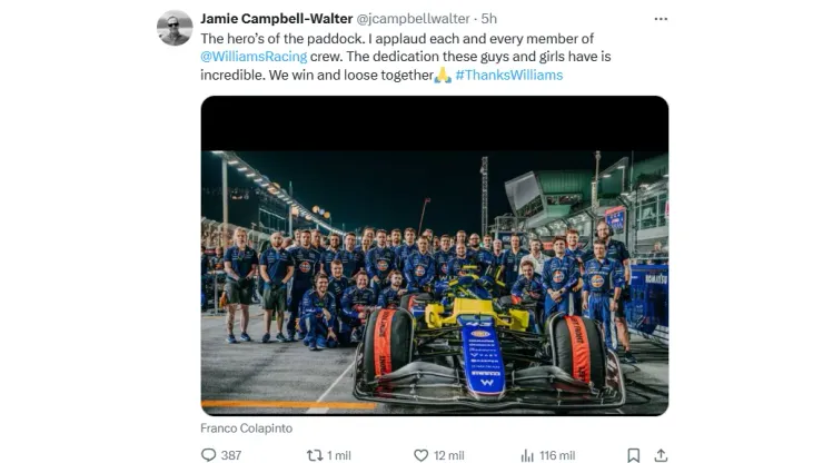 Franco Colapinto completó el Gran Premio de Las Vegas y, tras haber comenzado la carrera en el pitlane, finalizó en el 14° lugar. La jornada terminó con George Russell en lo más alto del podio y con Max Verstappen consagrándose campeón de la Fórmula 1.