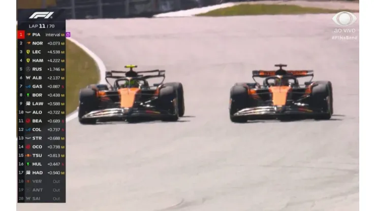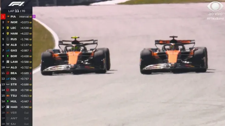 Norris y Piastri ya le sacaron más de tres segundos a Leclerc, aunque el australiano ya le mostró el auto un par de veces a su compañero de equipo.