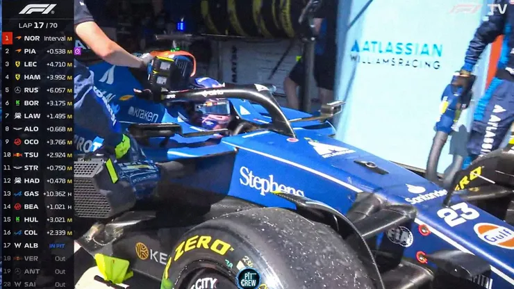 El líder de la carrera entra a boxes para poner duros, pero McLaren tuvo alguna complicación y ahora Oscar Piastri tiene la oportunidad de mostrar su ritmo adelante.