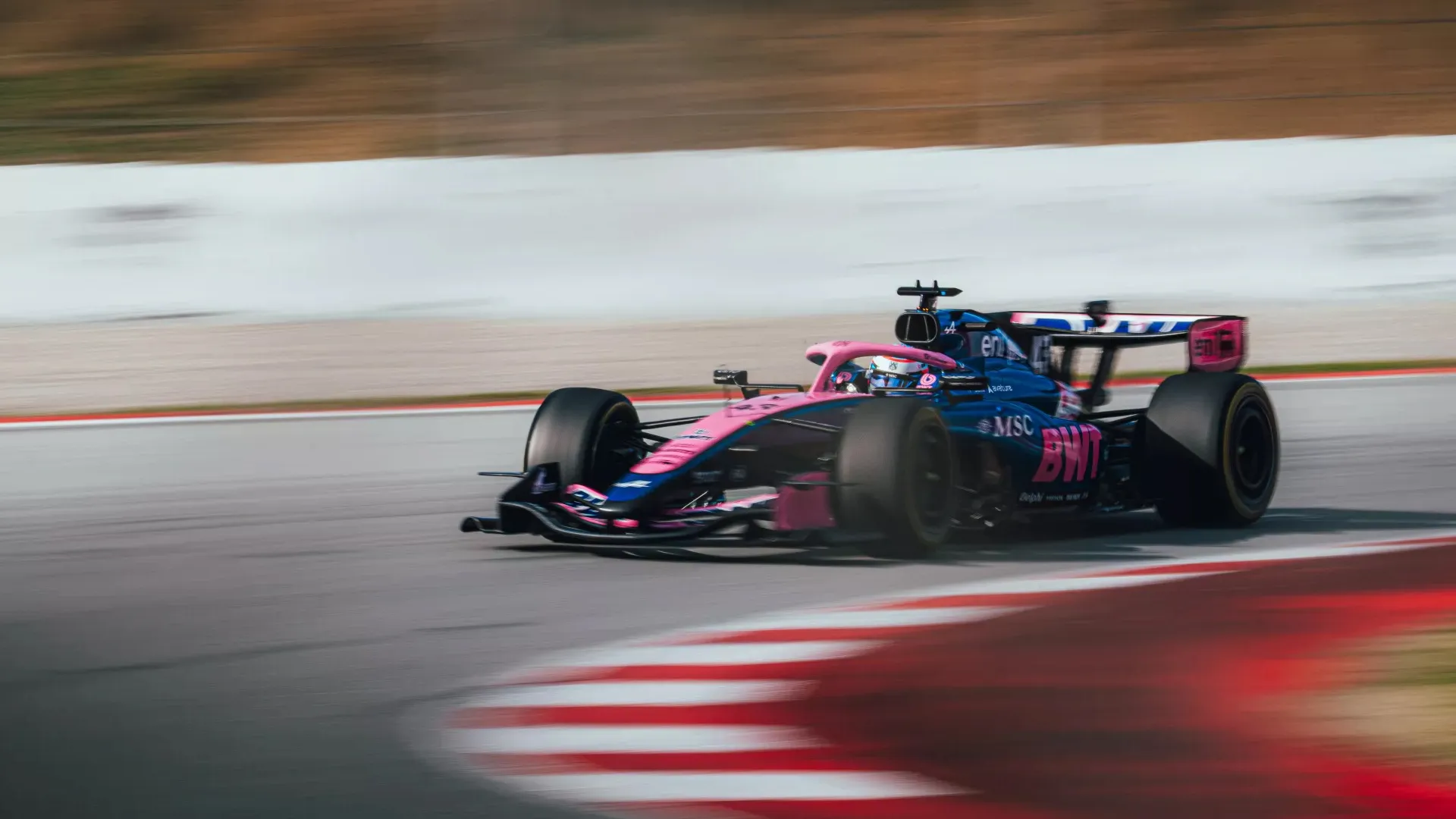 Colapinto completó 106 vueltas en los tests de Barcelona, sin mayores problemas. (Prensa Alpine)
