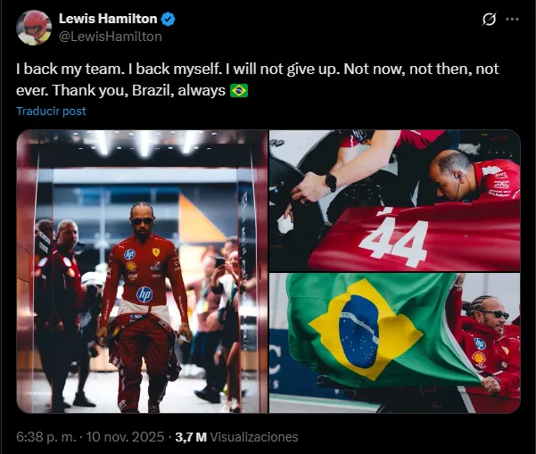 - Lewis Hamilton respondió en X (Twitter) con un: “Respaldo a mi equipo. Me respaldo a mí mismo. No me rendiré”.