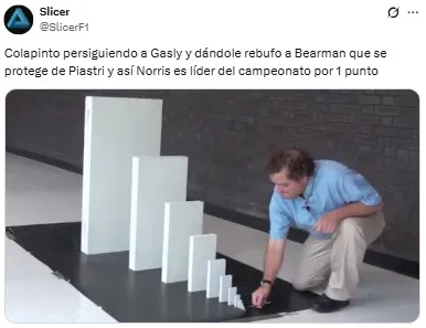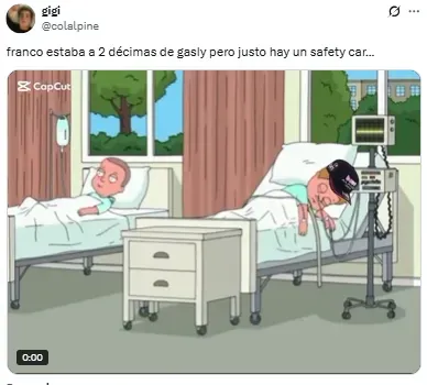 Durante la carrera, los fanáticos de la máxima categoría acompañaron la jornada con los habituales memes. Hubo graciosas menciones a la pelea entre los Alpine, pero también fue protagonista de los chistes Max Verstappen, que tuvo un comienzo de Gran Premio temerario para finalizar en el tercer lugar.
