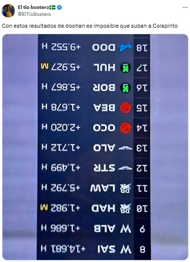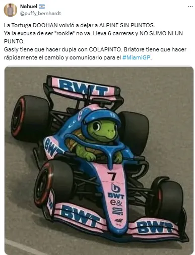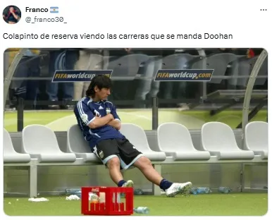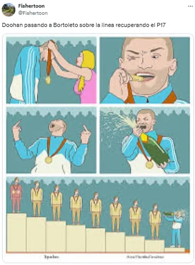 A lo largo de la carrera, y sobre todo tras conocer el resultado final, los fanáticos argentinos se hicieron presentes en redes sociales con críticas contra Doohan, así como también con los habituales memes para descontracturar la ansiedad por el regreso de Colapinto.