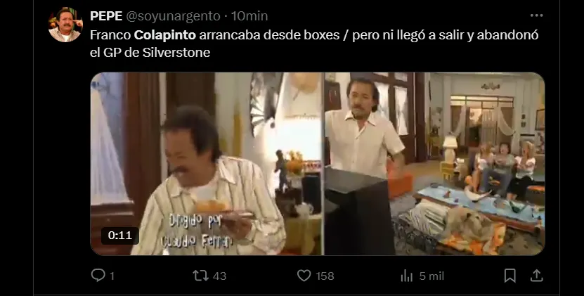 Los memes por el fallido GP de Gran Bretaña de Franco Colapinto