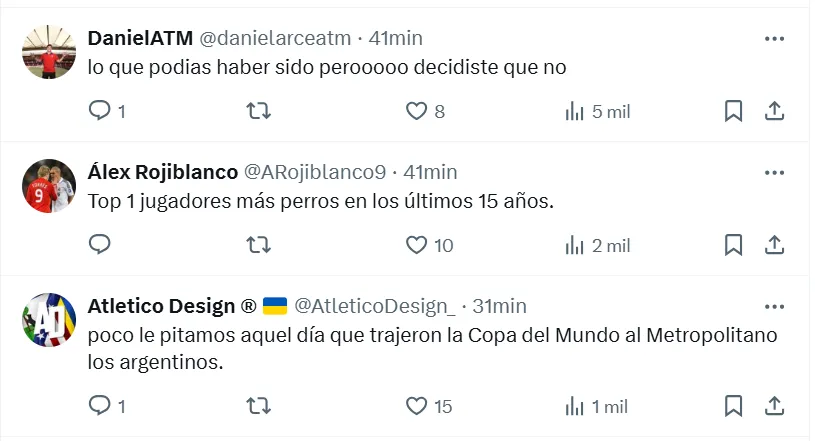 En la tarde del viernes, el conjunto norteamericano hizo formal el anuncio del volante argentino a través de un posteo en las redes sociales. Lo propio hizo el elenco español en sus cuentas oficiales, pero los fanáticos no perdonaron al campeón del mundo por haber dejado el club. Por eso, vamos a repasar los comentarios más destacados de los simpatizantes colchoneros.