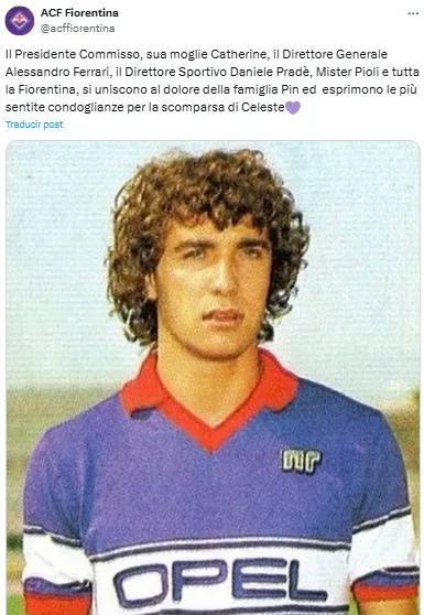 “El presidente Commisso, su esposa Catherine, el director general Alessandro Ferrari, el director deportivo Daniele Prade, el señor Stefano Pioli y toda la Fiorentina se unen al dolor de la familia Pin y expresan sus más profundas condolencias por el fallecimiento de Celeste”, publicó Fiorentina.