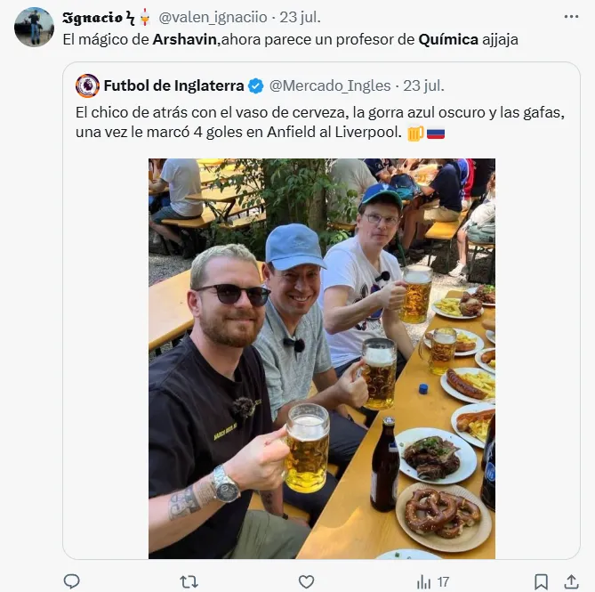 En 2025, el excéntrico exfutbolista fue protagonista de una imagen viral. Luego de muchos años fuera del foco, el ruso apareció en una foto con otros dos amigos usando gorra, anteojos y tomándose una cerveza. “Parece un profesor de química”, “¿qué le ha pasado”, “se convirtió en un NPC“, fueron algunos de los comentarios en referencia a su estado físico.