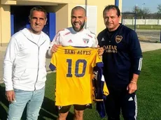 Ya retirado, Dani Alves emuló lo que hubiese sido una presentación como refuerzo del club de la Ribera. El brasileño se mostró feliz con aquellos colores, golpeó su pecho a la altura del escudo e incluso se animó a cantar el clásico “Dale, dale Boca”.