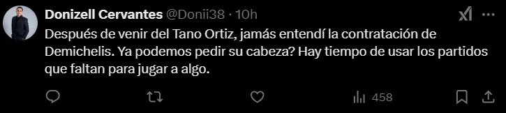 Desde que asumió en Rayados, Demichelis dirigió al equipo en 25 oportunidades y los resultados no fueron los esperados en líneas generales: ganó 10 encuentros, empató 8 y perdió 7. Más allá de eso, las críticas a su gestión también focalizan en que nunca encontró un buen rendimiento y la falta de criterio para elegir a los delanteros. El pasado sábado, Rayados cayó ante Juárez por 2 a 1 y eso desató enojo en los hinchas que fueron lapidarios en las redes sociales.