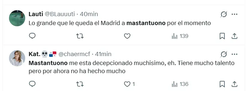 La reacción de los hinchas de Real Madrid contra Franco Mastantuono
