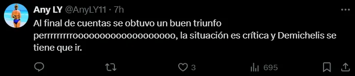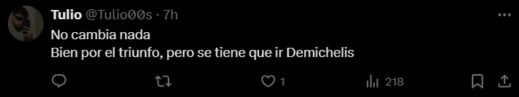 “Va a seguir pasando en todos los deportes donde haya líderes, donde haya jugadores que quieran ganar. Esto es fútbol profesional. Nadie está contento con una novena posición, ni el entrenador ni el último jugador del plantel”, concluyó Demichelis.