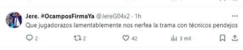 “¡Vamos! Ya no hay excusas para no campeonar”, comentó un fanático ante la noticia. “Con este plantel, si o si tienen que quedar campeones”, apuntó otro en la misma dirección. “¿Y cuándo empiezan los buenos resultados? Digo, porque el partido contra Sevilla fue Pésimo”, se quejó un tercero. “Qué jugadorazo. Lamentablemente nos nerfea la trama con técnicos pendejos”, advirtió uno más, apuntando directamente a Demichelis y su antecesor, Fernando Ortiz.