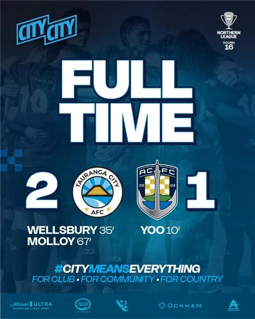 En su regreso a la actividad, luego de empatar 1 a 1 ante Boca en Nashville, Auckland City perdió 2 a 1 frente a Tauranga City por la Liga Regional Norte. El equipo que viste de azul comenzó arriba en el marcador gracias al tanto de David Yoo, pero minutos más tarde lo igualó Wellsbury y en el complemento lo dio vuelta Molloy. Un nombre que quedó marcado fue el de Christian Gray, el profesor de educación física que marcó el empate ante Boca en Nashville. El marcador central fue titular en la caída de su equipo.