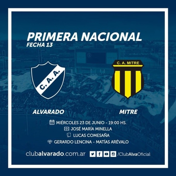 Los de casa asumen este duelo luego de obtener un triunfo por 3 a 1 ante el conjunto de Estudiantes de Río Cuarto. Alvarado reconoce que en su territorio podrá cosechar nuevas conquistas y sabe que en el siguiente juego se pueden quedar con los tres puntos en disputa.