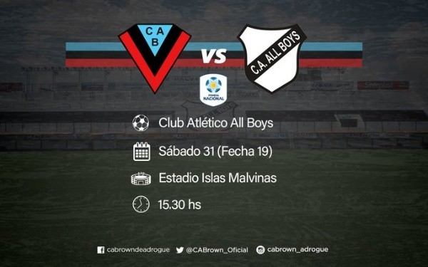 Brown de Adrogué, por su lado, tiene un mejor panorama y tratará de ratificar el buen momento. Los visitantes son cuartos en la tabla y llegan tras haberle ganado 3 a 0 a su similar de Brown de Puerto Madryn.