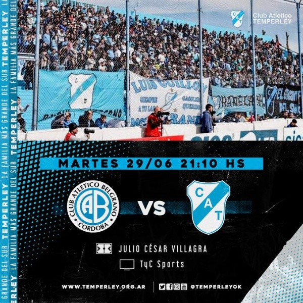 Por una nueva jornada de laPrimera Nacional,Belgranorecibe en su estadio la resistencia deTemperleyen un duelo que está pautado para disputarse este martes 29 de junio.Las emociones de este compromiso serán transmitidasEN VIVO Y EN DIRECTOa través de la pantalla deTYC SPORTS PLAY y TYC SPORTS.