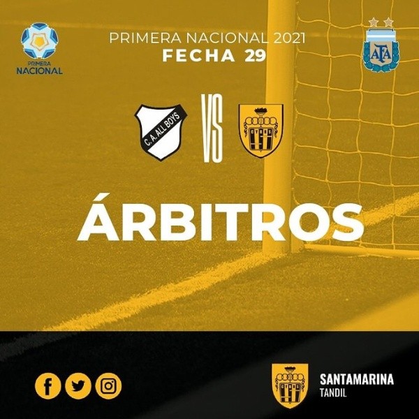 Por una nueva jornada de laPrimera Nacional, All Boysen condición de local recibe la resistencia deSantamarinaen un cotejo que se realizará este sábado9de octubre. Las emociones serán transmitidasEN VIVO Y EN DIRECTOa través de la pantalla de TYC SPORTS PLAY.