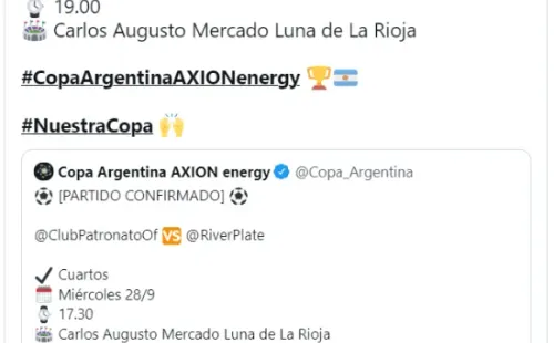 Más tarde será el turno de River y Patronato, originalmente pautado para las 17:30 y reprogramado para las 19. Dicho encuentro tendrá lugar en La Rioja y será importante para los de Gallardo por dos motivos: mantener esta via de acceso a la Copa Libertadores y meterle presión a Boca para un nuevo Superclásico.