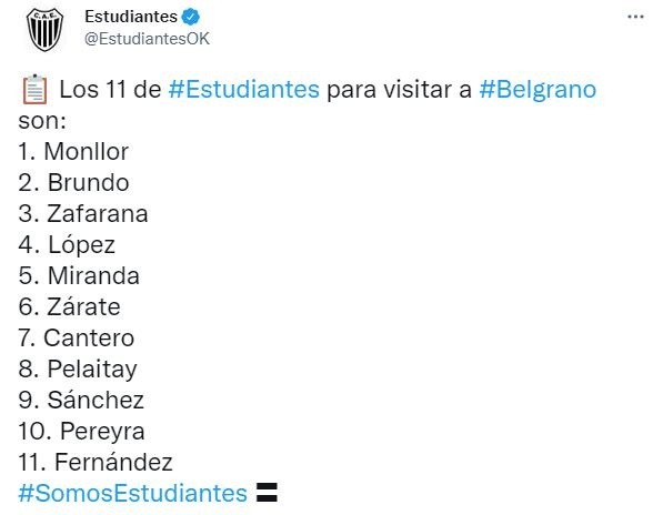 Formación confirmada de Estudiantes (BA) vs. Belgrano