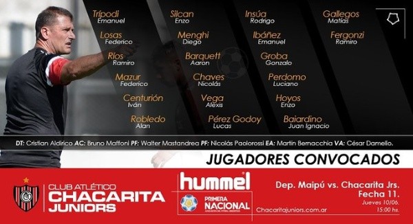 Por una nueva jornada de laPrimera Nacional,Deportivo Maipúrecibe a su similar deChacarita Juniorsen un duelo que se realizará este jueves10de junio. La transmisión de este juego seráEN VIVO Y EN DIRECTOa través de la pantalla deTYC SPORTS PLAY.