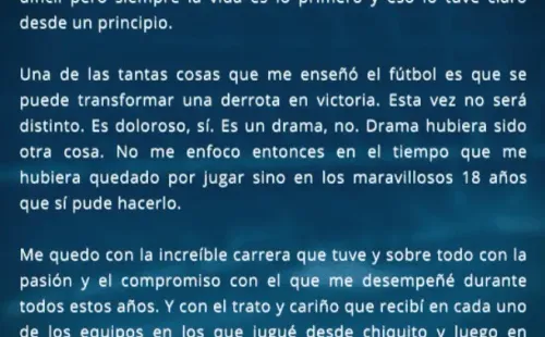 “He decidido dejar de jugar al fútbol. Mi sueño era jugar en Primera División y nunca pensé llegar a Europa. Quiero a agradecerle a todos”, dijo el Kun Agüero en la conferencia de prensa de despedida. Y al igual que él en Barcelona, el mundo del fútbol lloró su despedida. Lionel Messi, Dibu Martínez, Sergio Ramos, Di María, Del Potro y tantos otros lo felicitaron por su gran carrera y, tras las emociones, el jugador publicó un comunicado en sus redes.